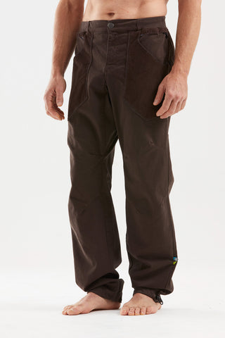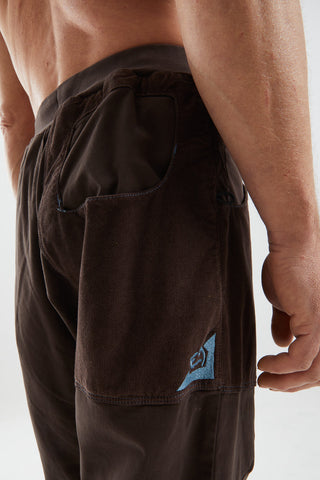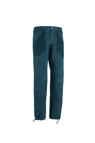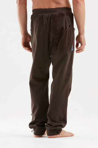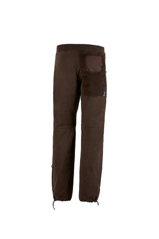 These outdoor and climbing trousers are crafted from organic cotton satin, featuring front and back pockets made of textured velvet. The back pocket is detailed with embroidery. They include an adjustable waistband and leg hems, plus brush holders on both sides for added convenience. Designed for excellent mobility and comfort, they offer a regular fit and are proudly made in Italy.