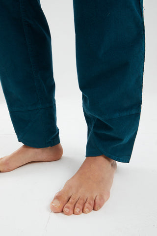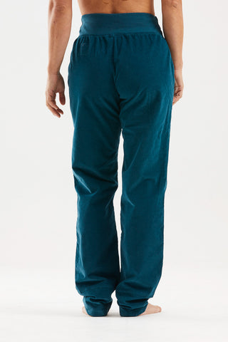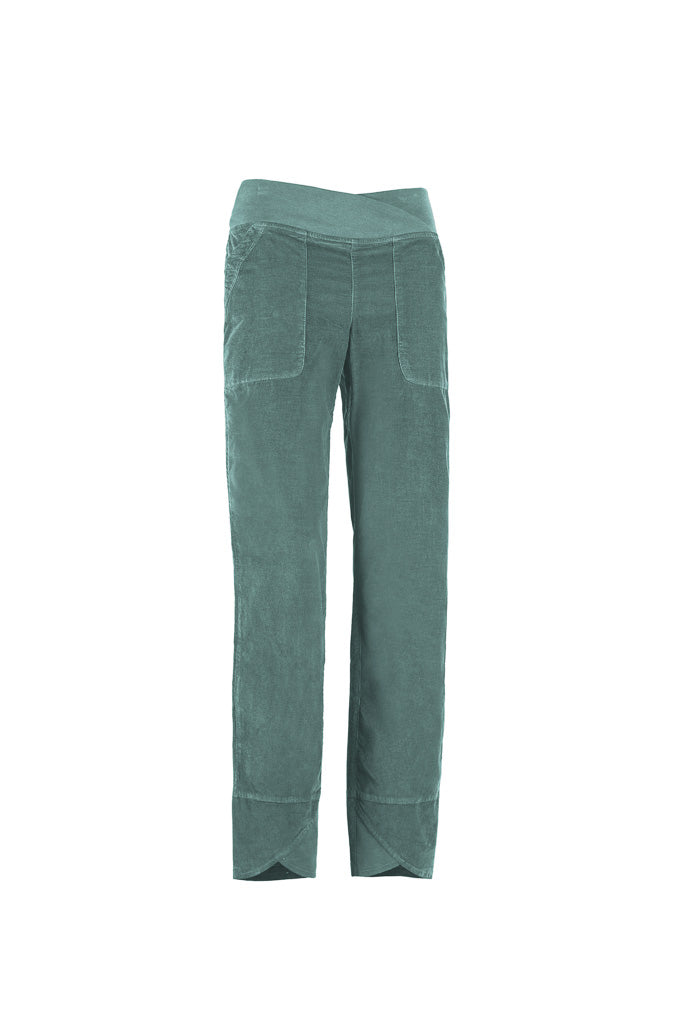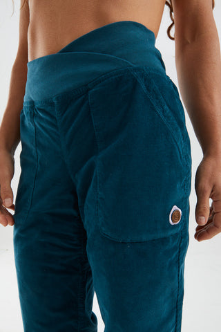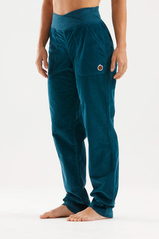 OLLY climbing and outdoor trousers are crafted from textured velvet and organic cotton. Featuring a unique waistband cut and distinct leg hems, they combine practicality with style. Details include embroidery and an eco-leather patch on the left pocket, offering superior comfort and a relaxed fit. Proudly made in Italy.