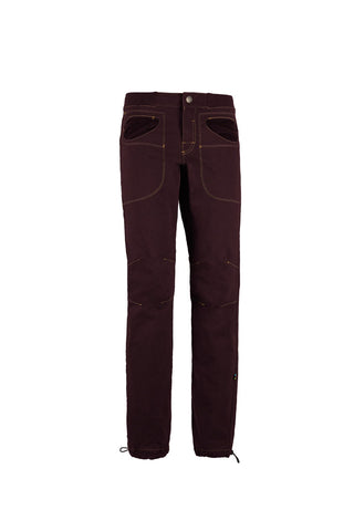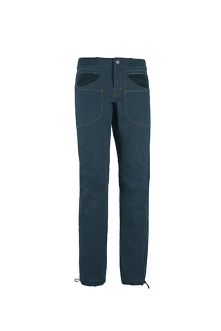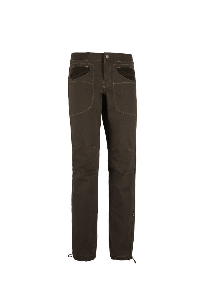 These outdoor and climbing pants are crafted from organic cotton fabric. They feature uniquely stitched pockets and a logo embroidered on the back. With an adjustable waistband and a skinny fit, they offer superior comfort. Proudly made in Italy.