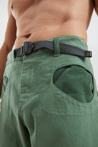 These outdoor and climbing trousers feature a built-in belt crafted from organic cotton, adjustable via buckle for a secure fit. They include embroidered logo detailing on the back, adjustable hems for versatile leg length, and brush holders on both sides for convenience. Designed with a regular fit, they prioritize comfort and freedom of movement. Made in Italy with expert craftsmanship.