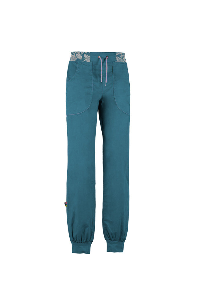 Urban climbing trousers in linen & organic cotton. Embroidery on the right front pocket. Print on the waist. Adjustable waist. Good comfort and relaxed fit. Made in Italy.